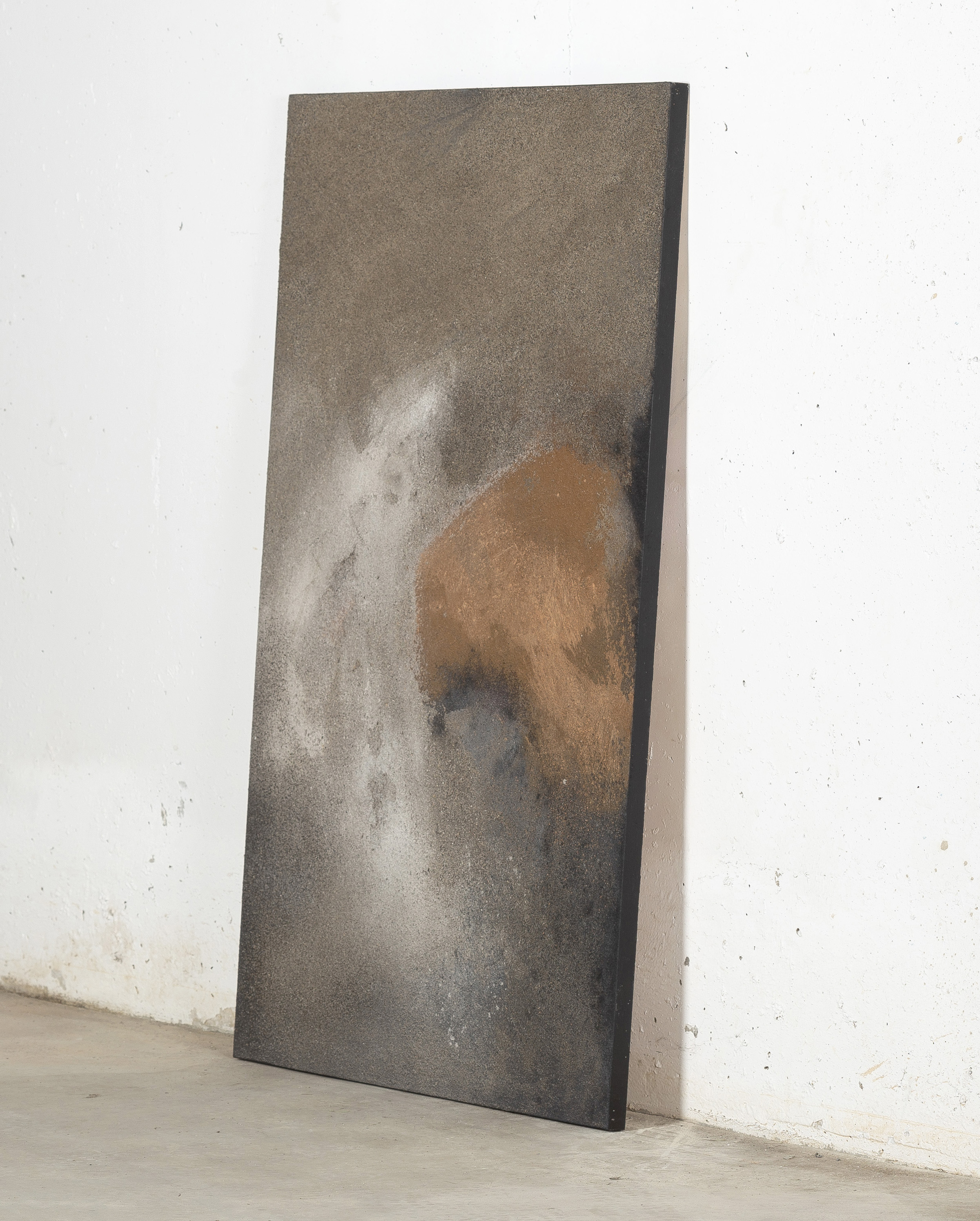 - Técnica mixta, acrílico y pigmentos naturales hechos con arena, cenizas, carbón y arcilla sobre tablero de Calabó.