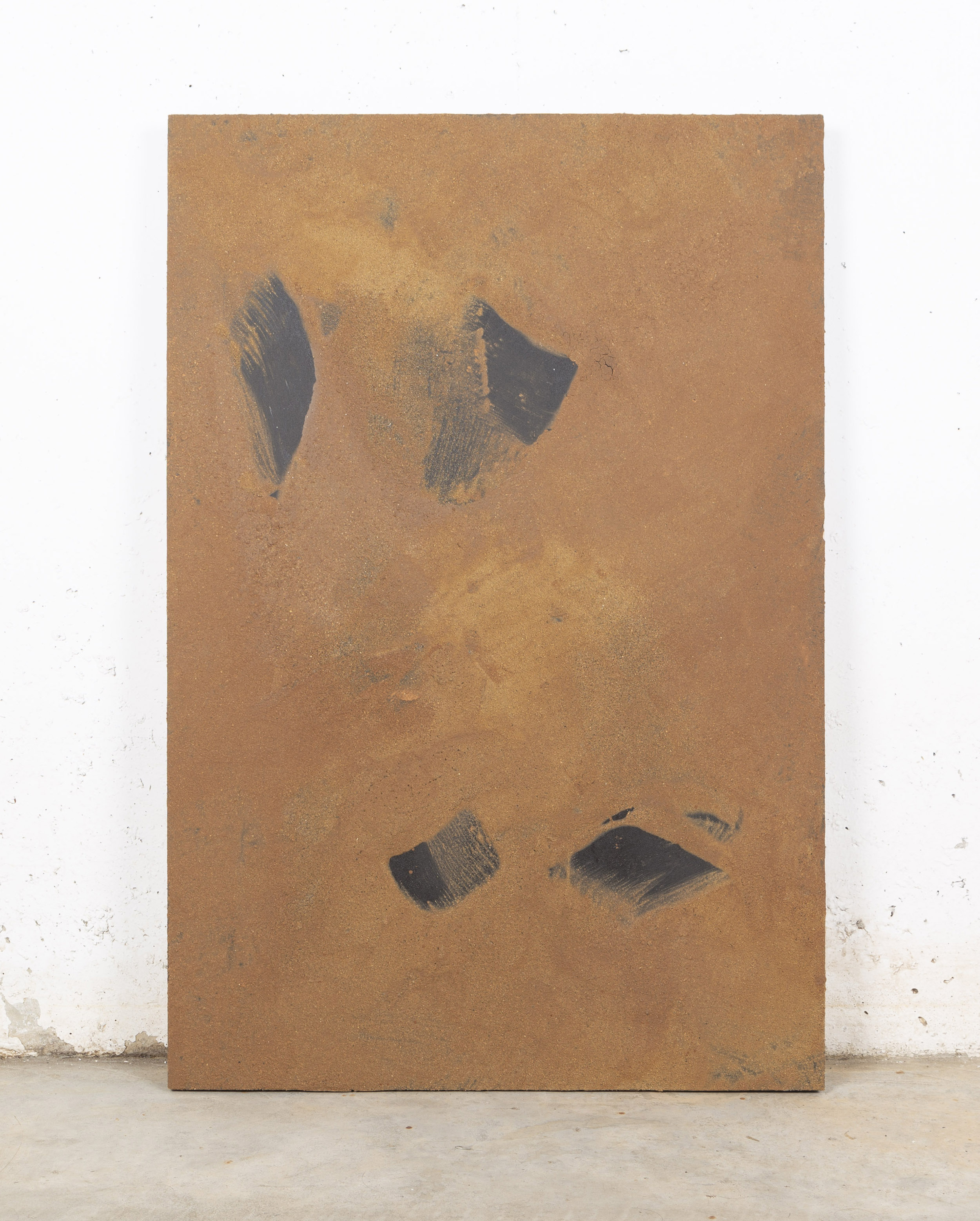 - Mixed technique, acrylic blcak and natural pigments made from wild clays, sand and vegetal charcoal on a Calabó board.