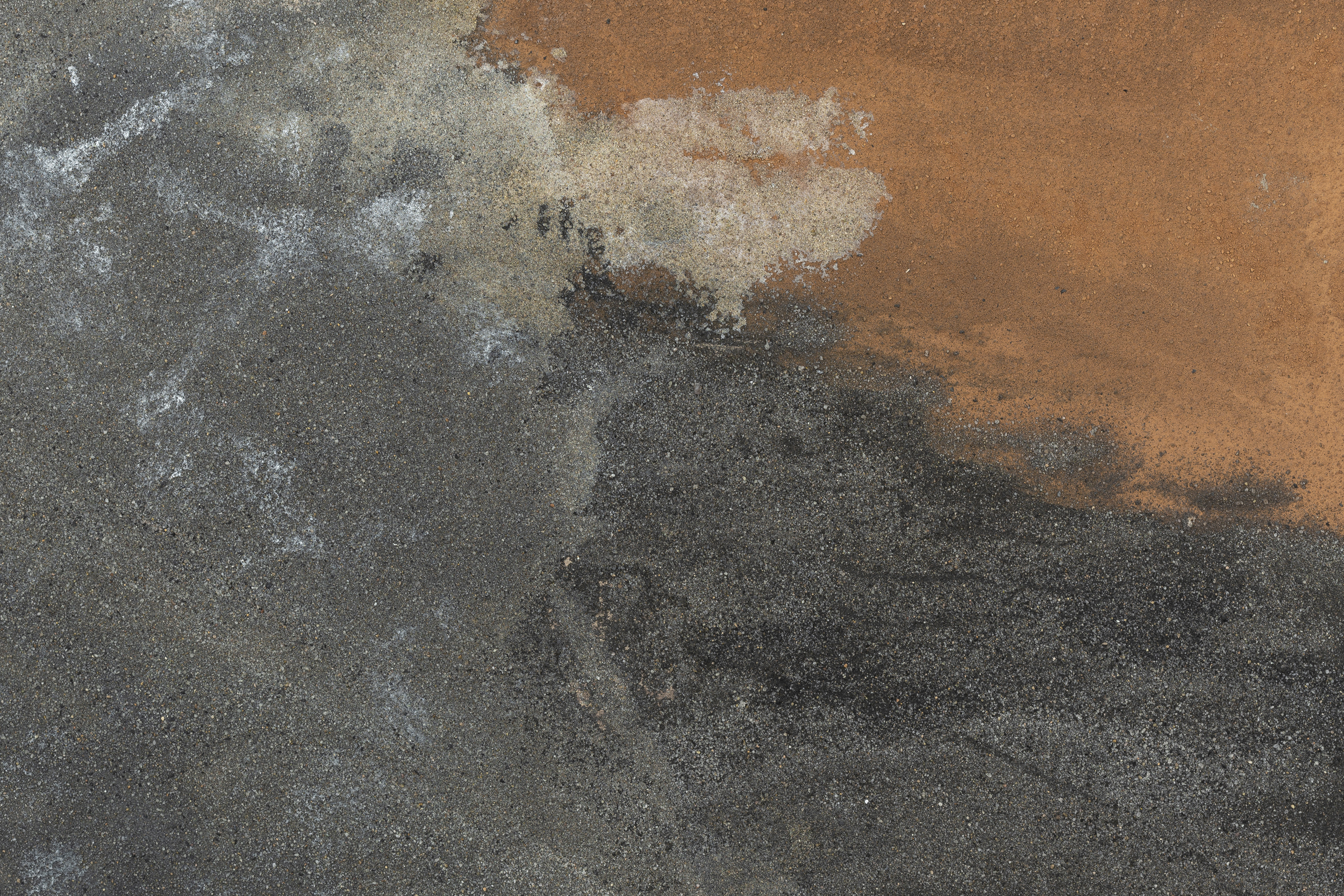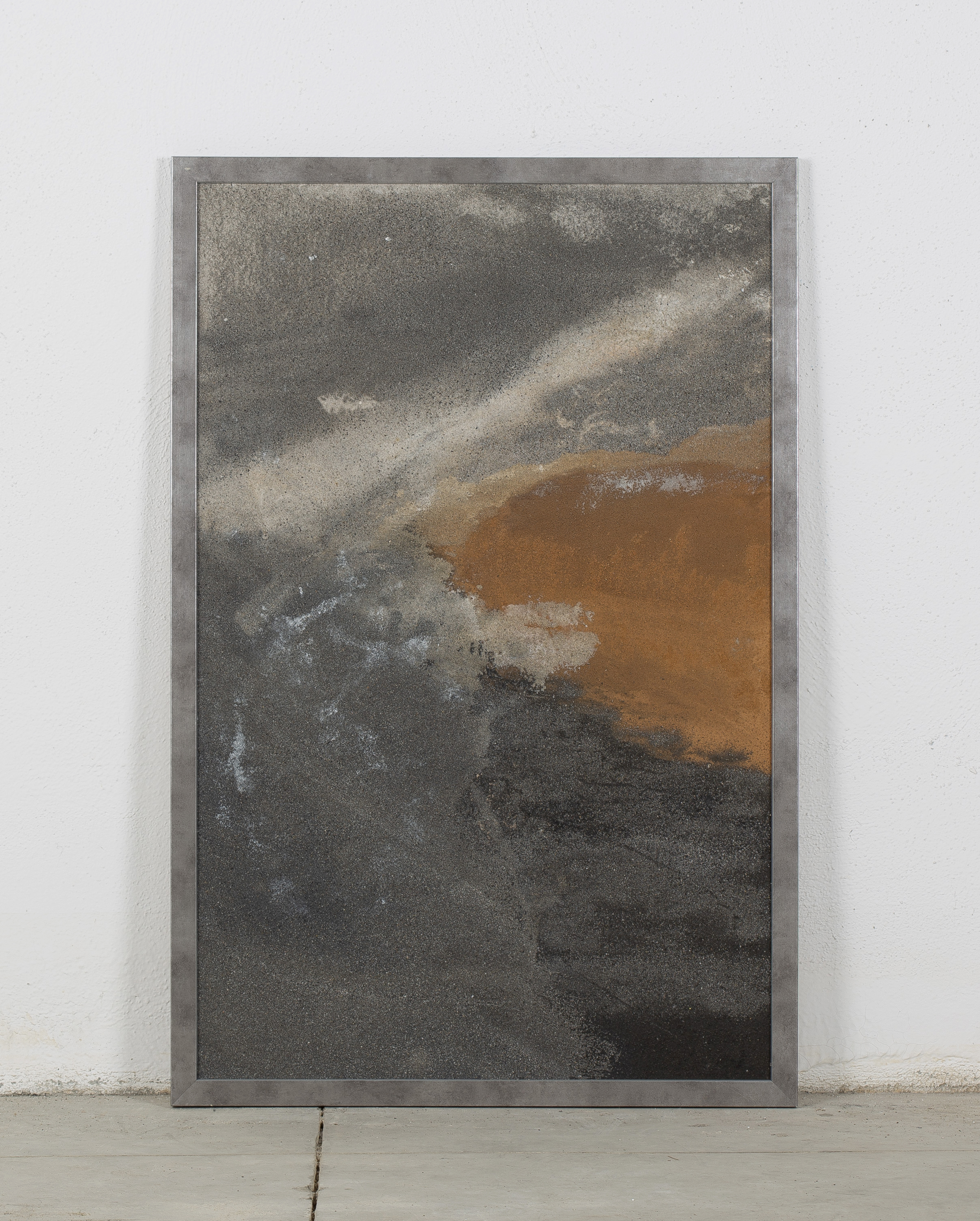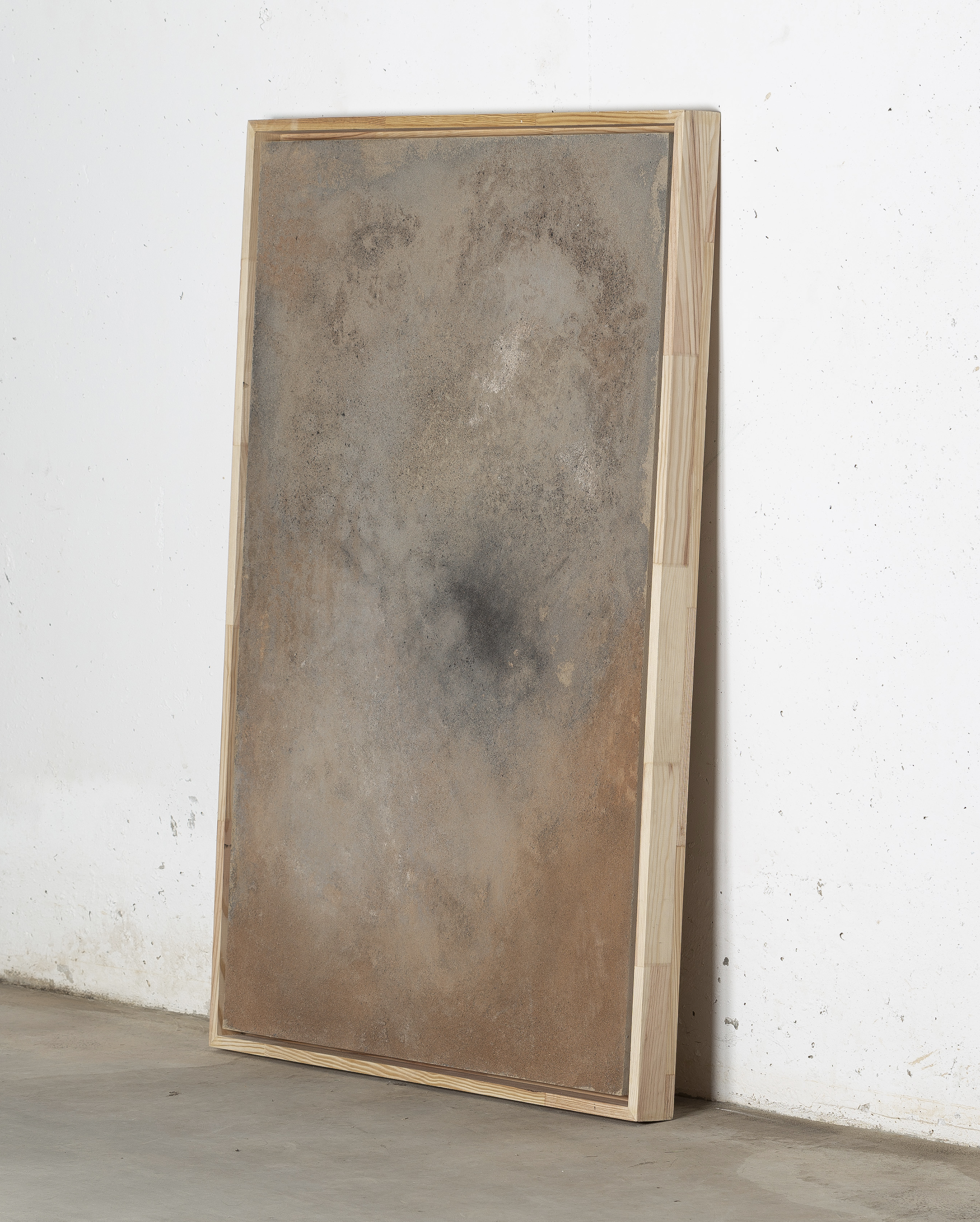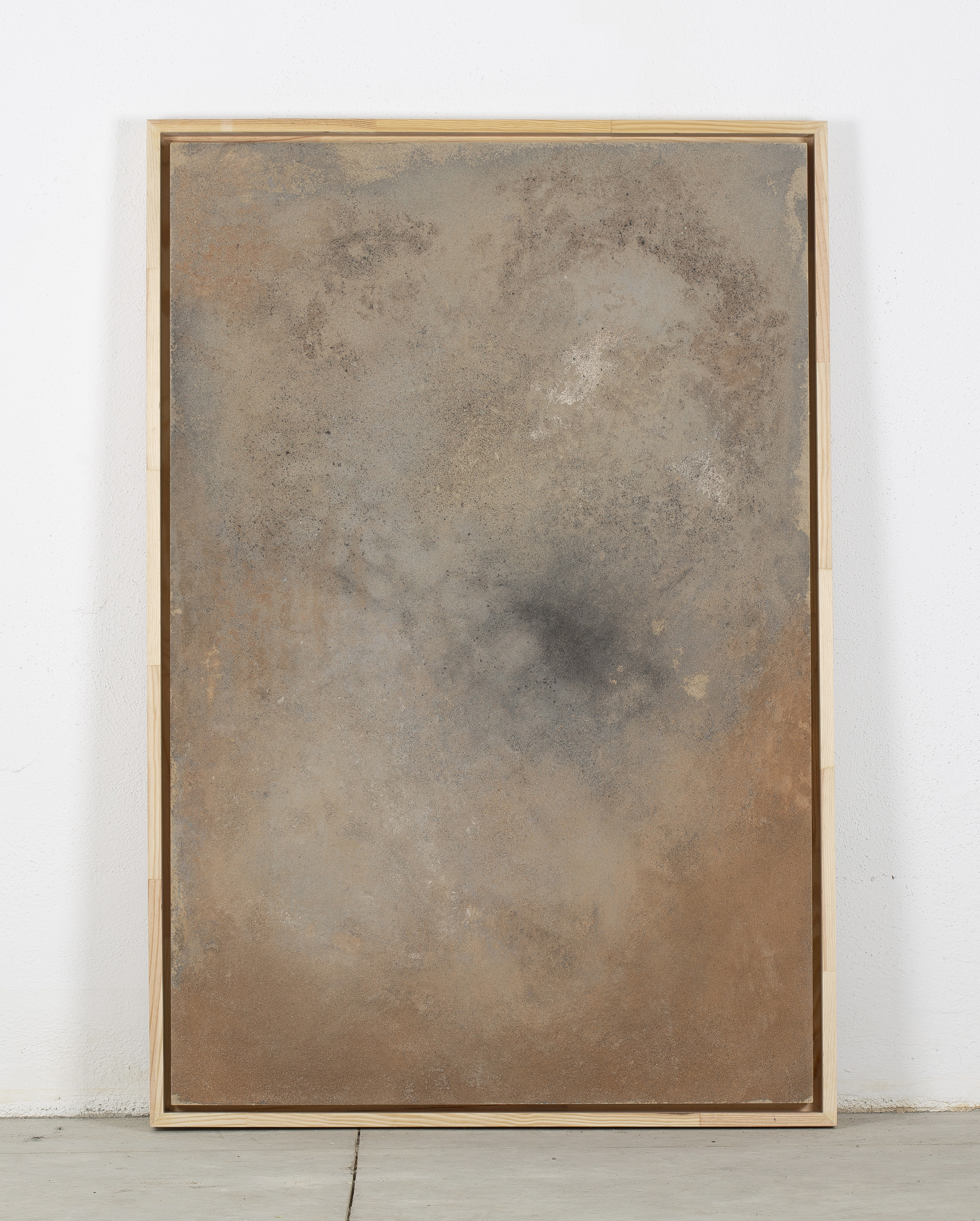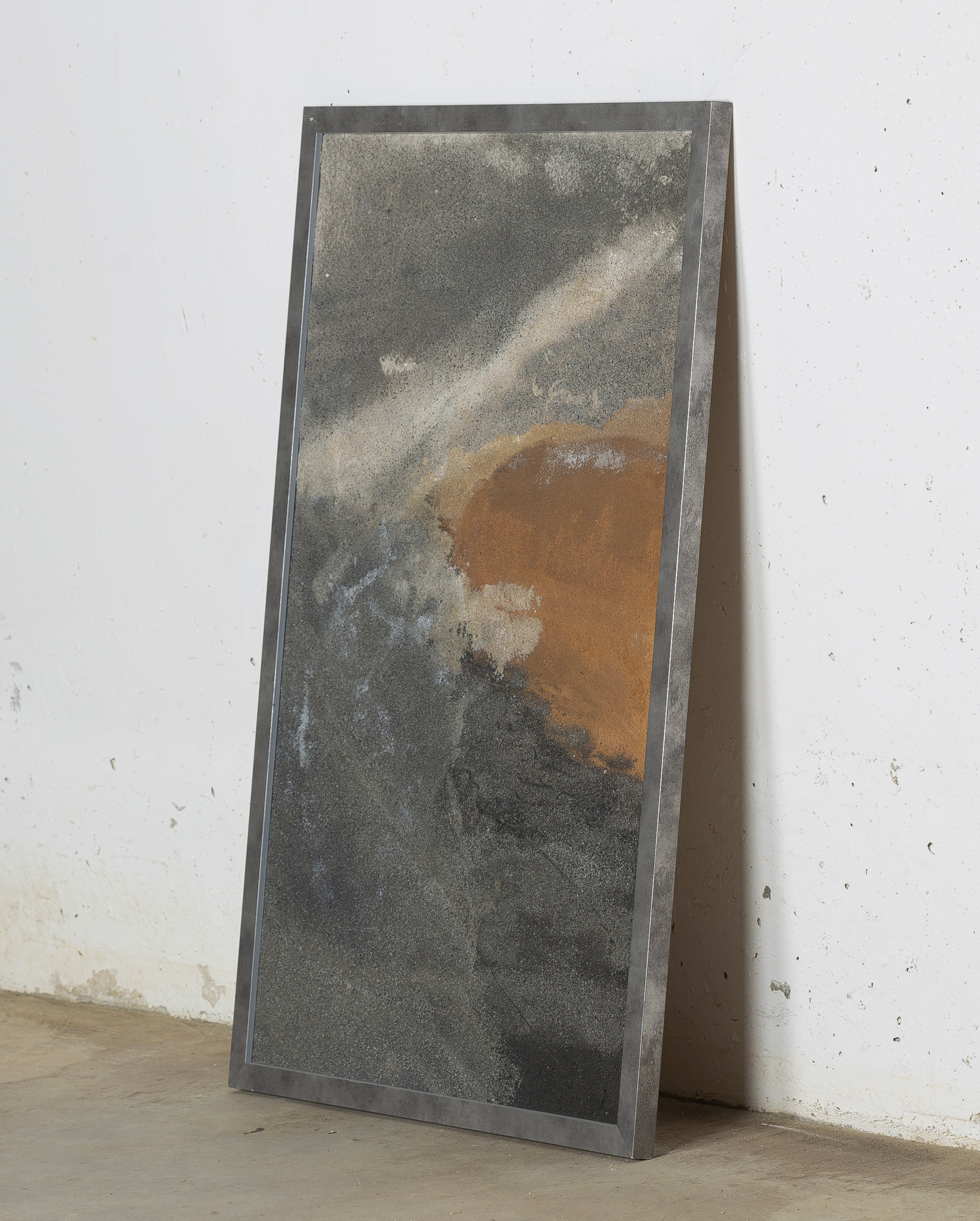 - Mixed media: concrete and natural pigments, made out of stones, sand, charcoal and ashes on a DM board.