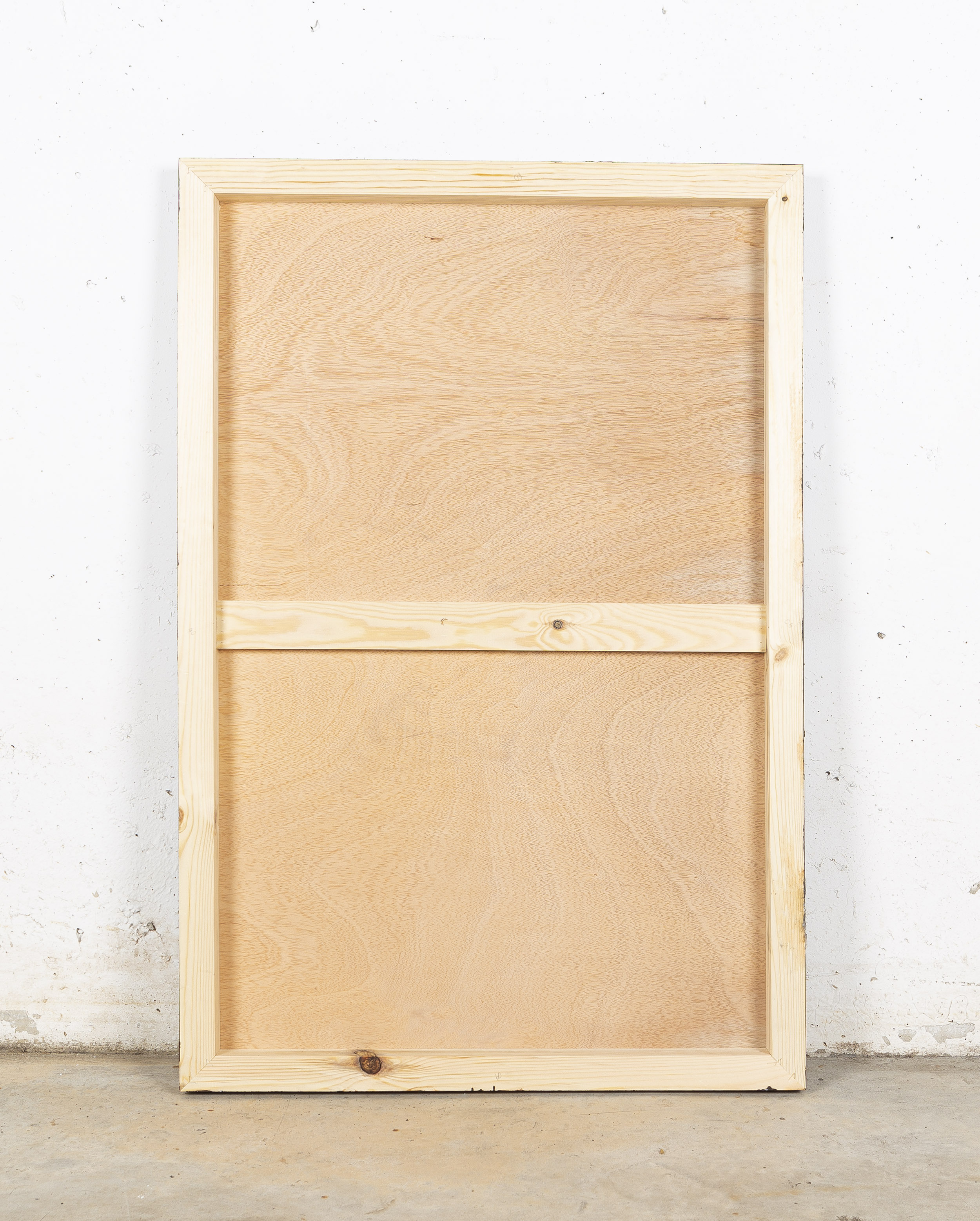 - Tablero pintado sobre bastidor de madera, listo para colgar.
